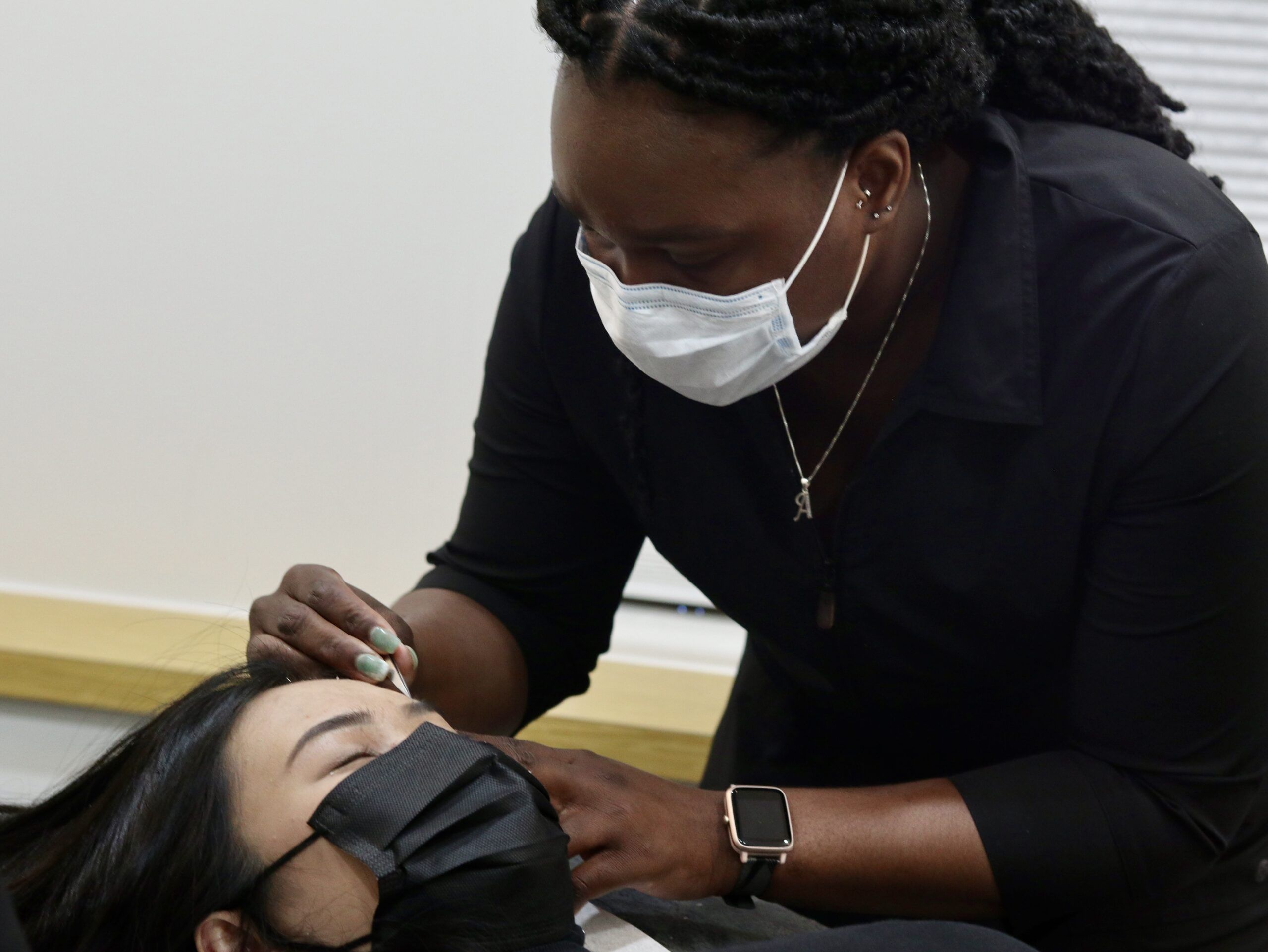 “Beauty services involve precision and require good visibility. Ensure that you regularly have your vision professionally checked and that you have the proper prescription and eyewear necessary for you to perform at your best. Hair neatly pulled away from your face also helps with visibility and prevents it from getting in the way or shedding on clients.”